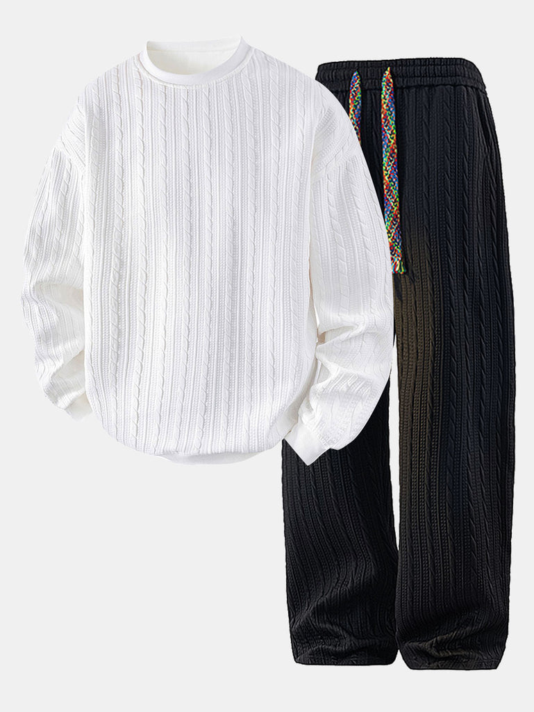 Relax Fit Twist Jacquard Crew Neck Sweatshirt & Twisted Jacquard Straight Leg Pants