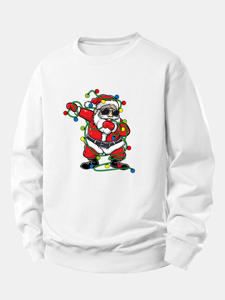 Christmas Lights Santa Claus Print Relax Fit Sweatshirt