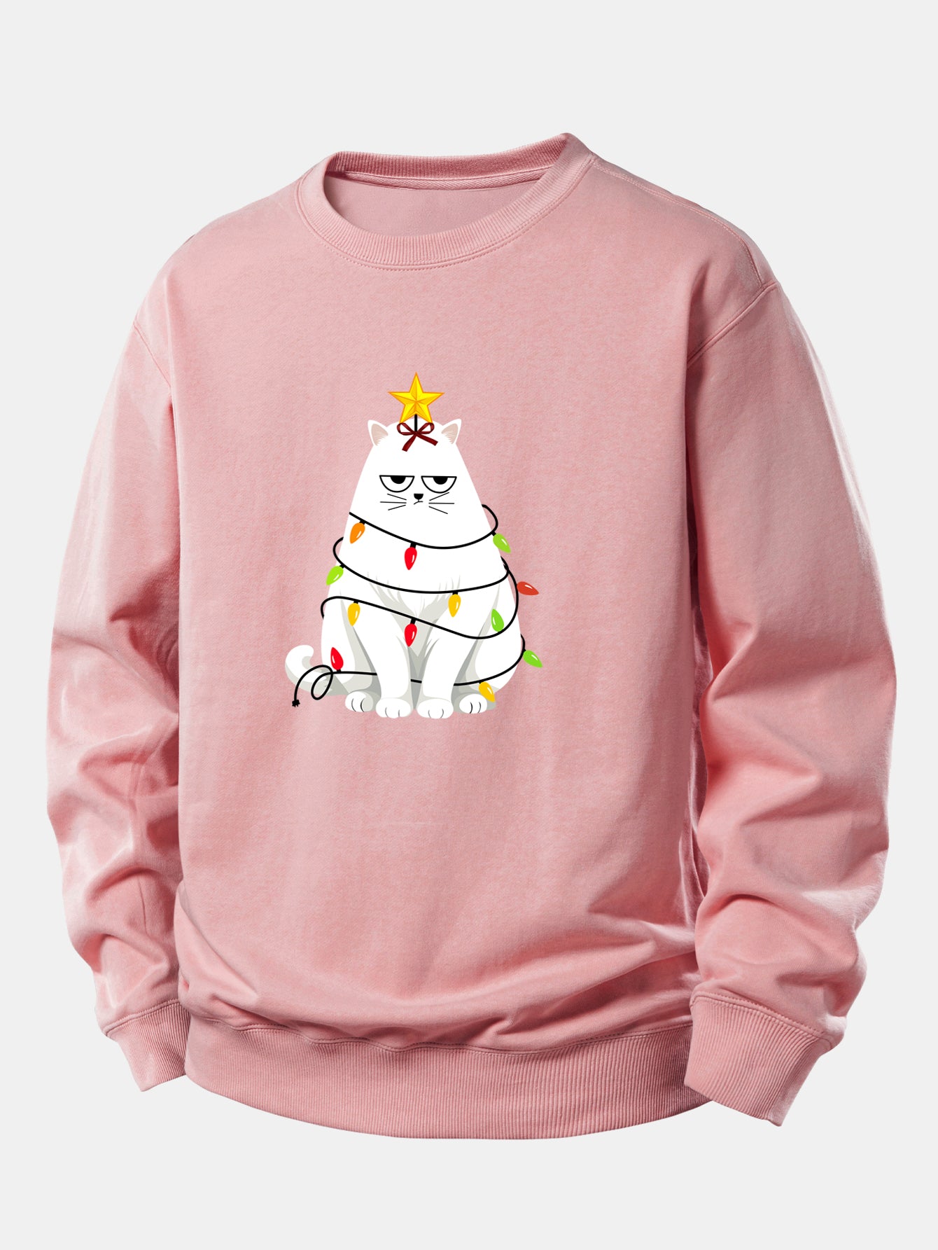 Christmas Lights White Cat Print Relax Fit Sweatshirt