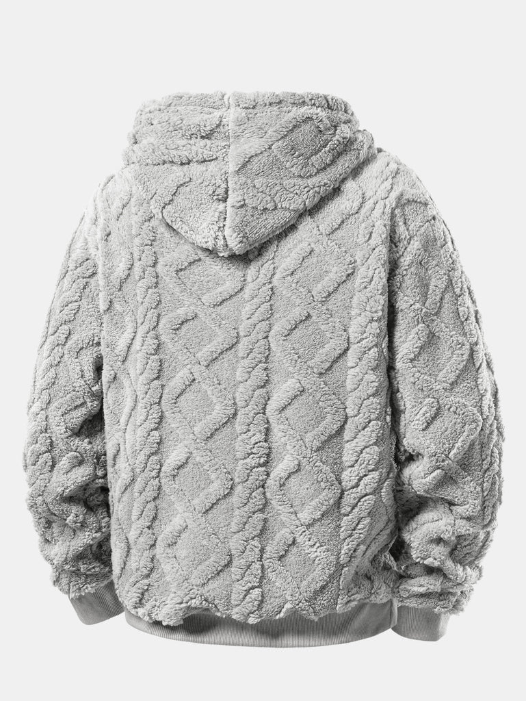 Relax Fit Geometric Jacquard Teddy Fleece Hoodie