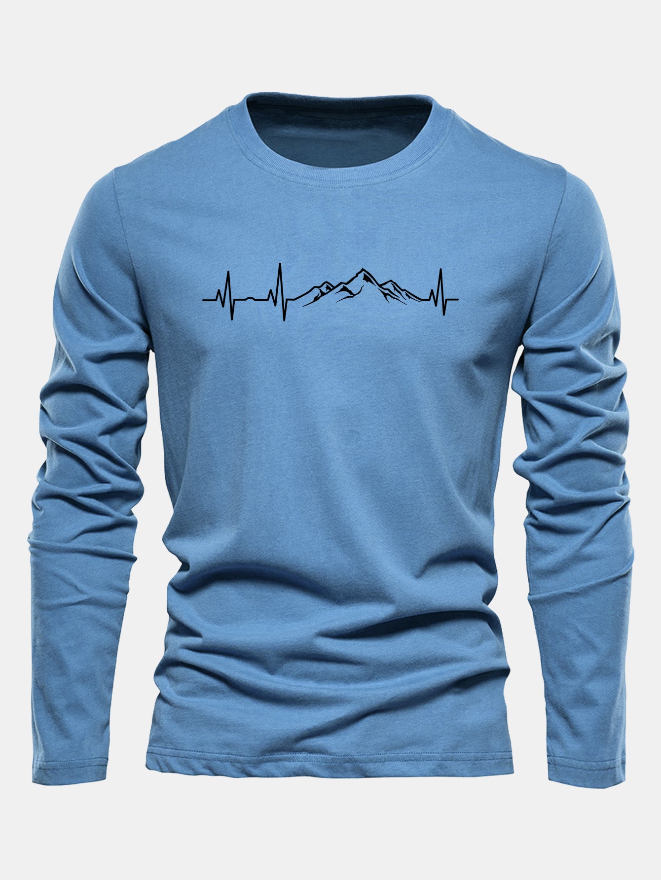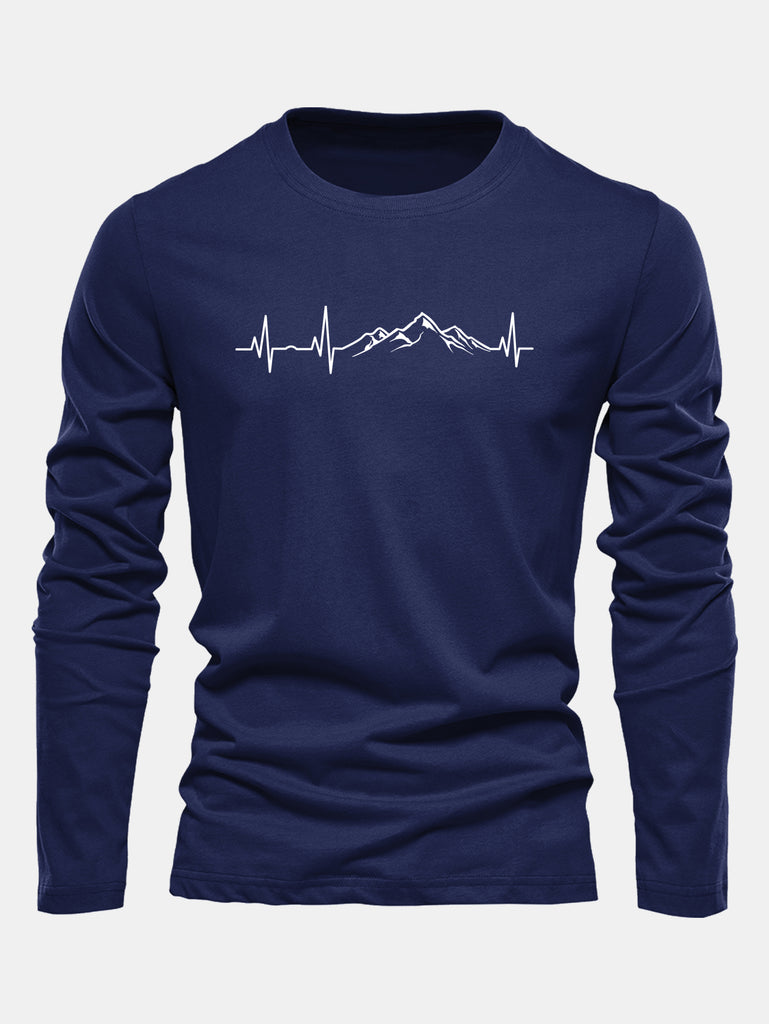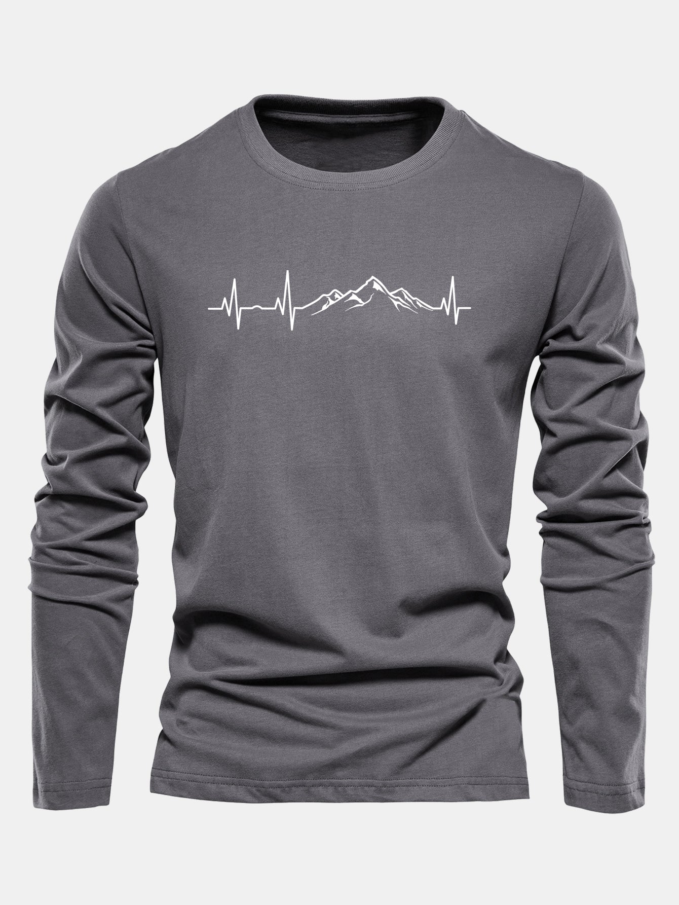 Long Sleeve Heartbeat Print Cotton T-Shirt