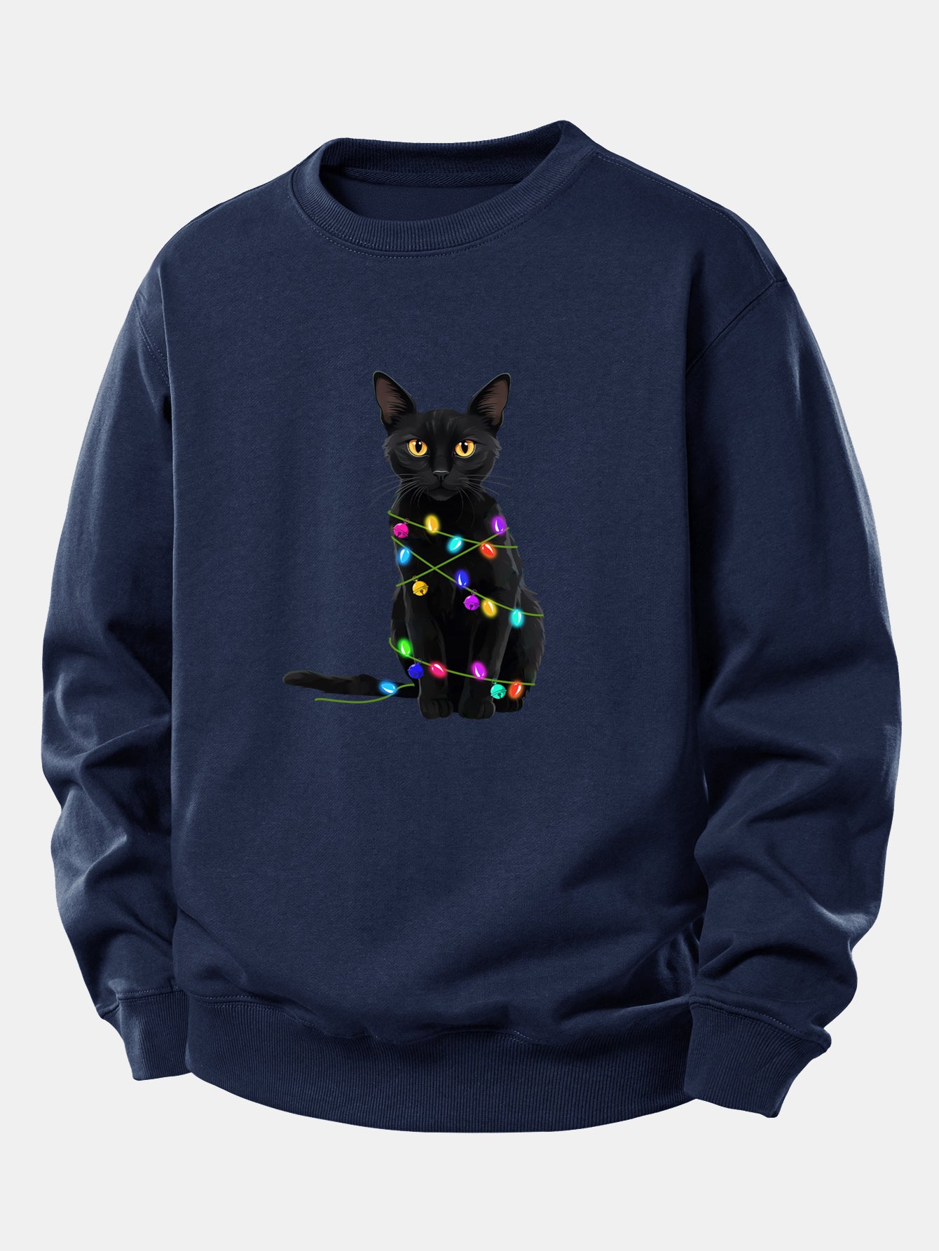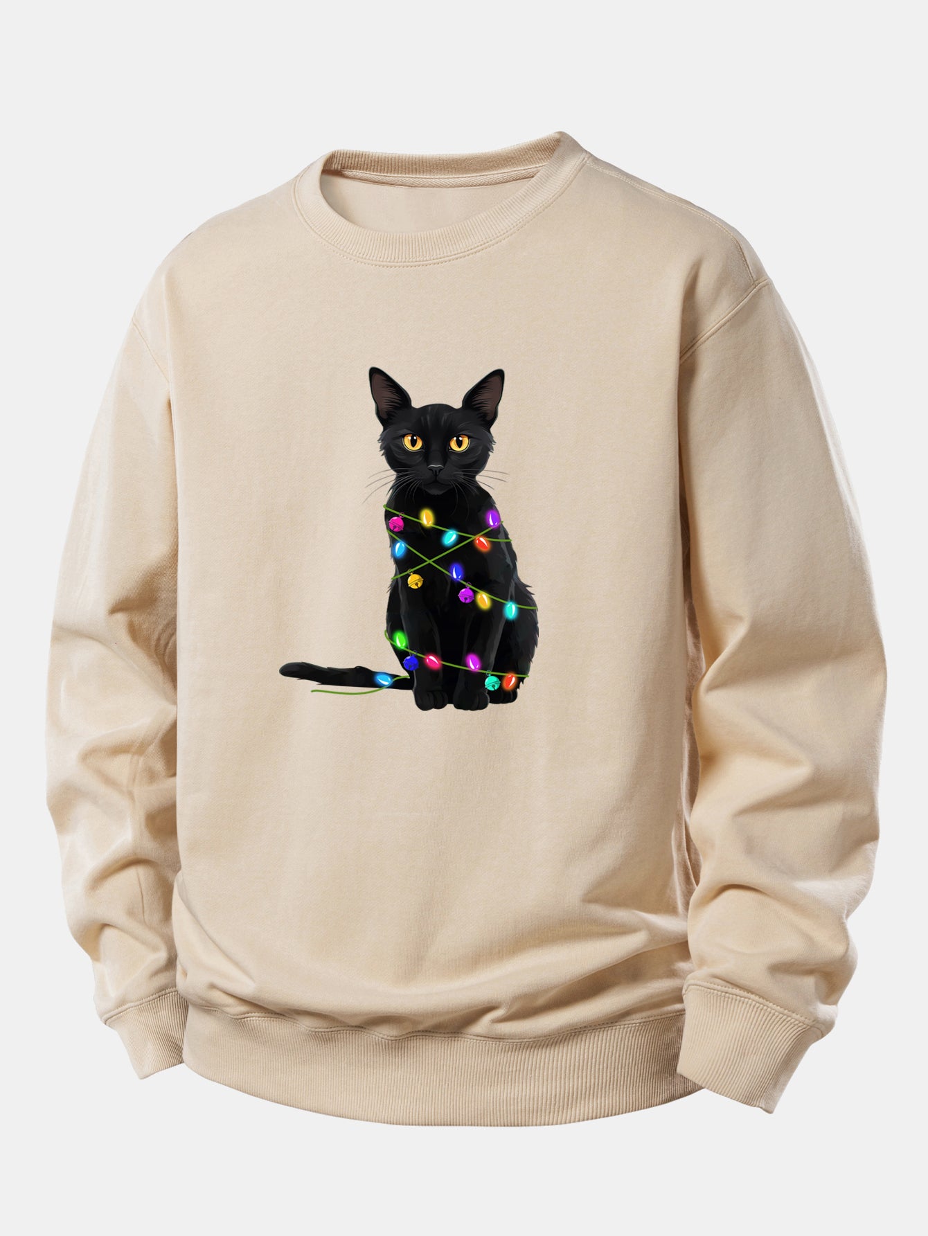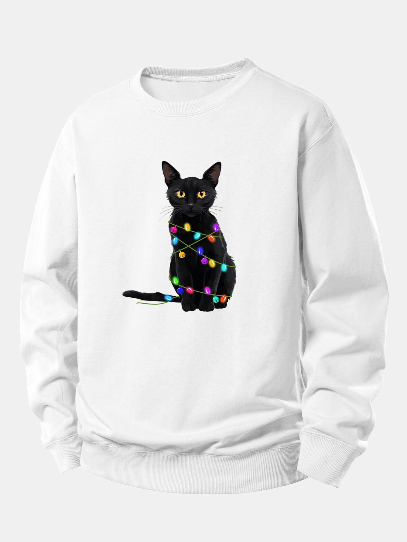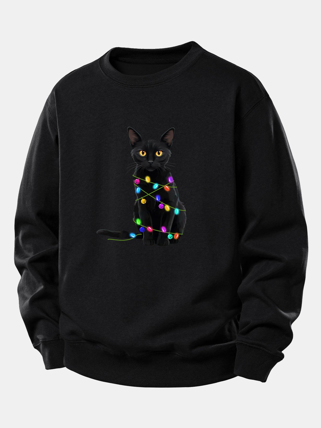 Color Lights Black Cat Print Relax Fit Sweatshirt