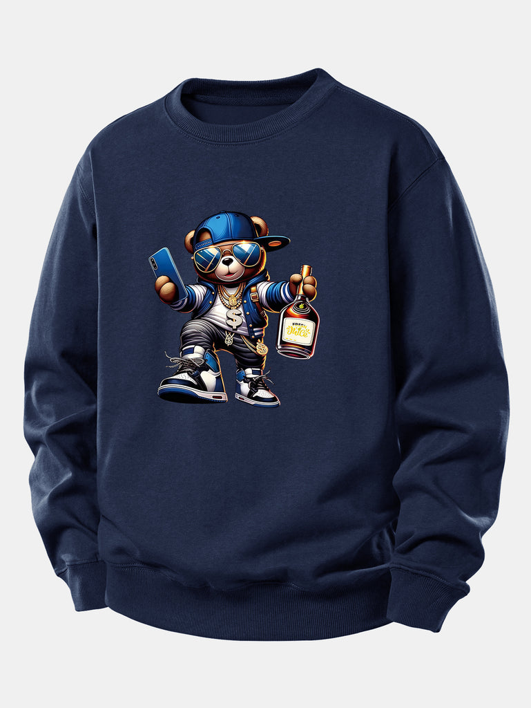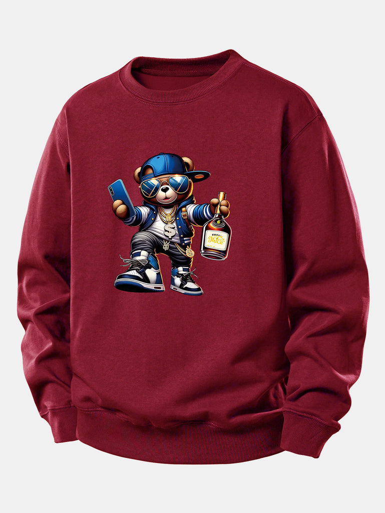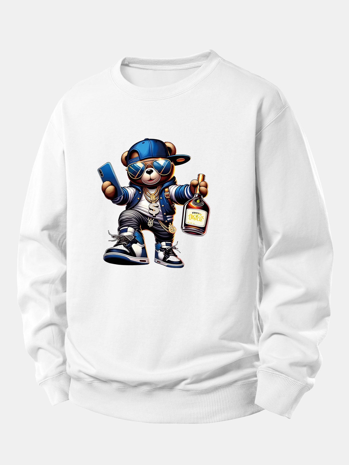 Hip Hop Bär Druck Locker Geschnittenes Sweatshirt