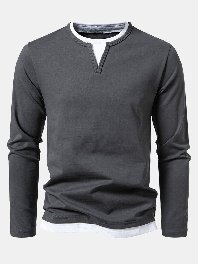 Long Sleeve 2 In 1 Notched Collar T-Shirt