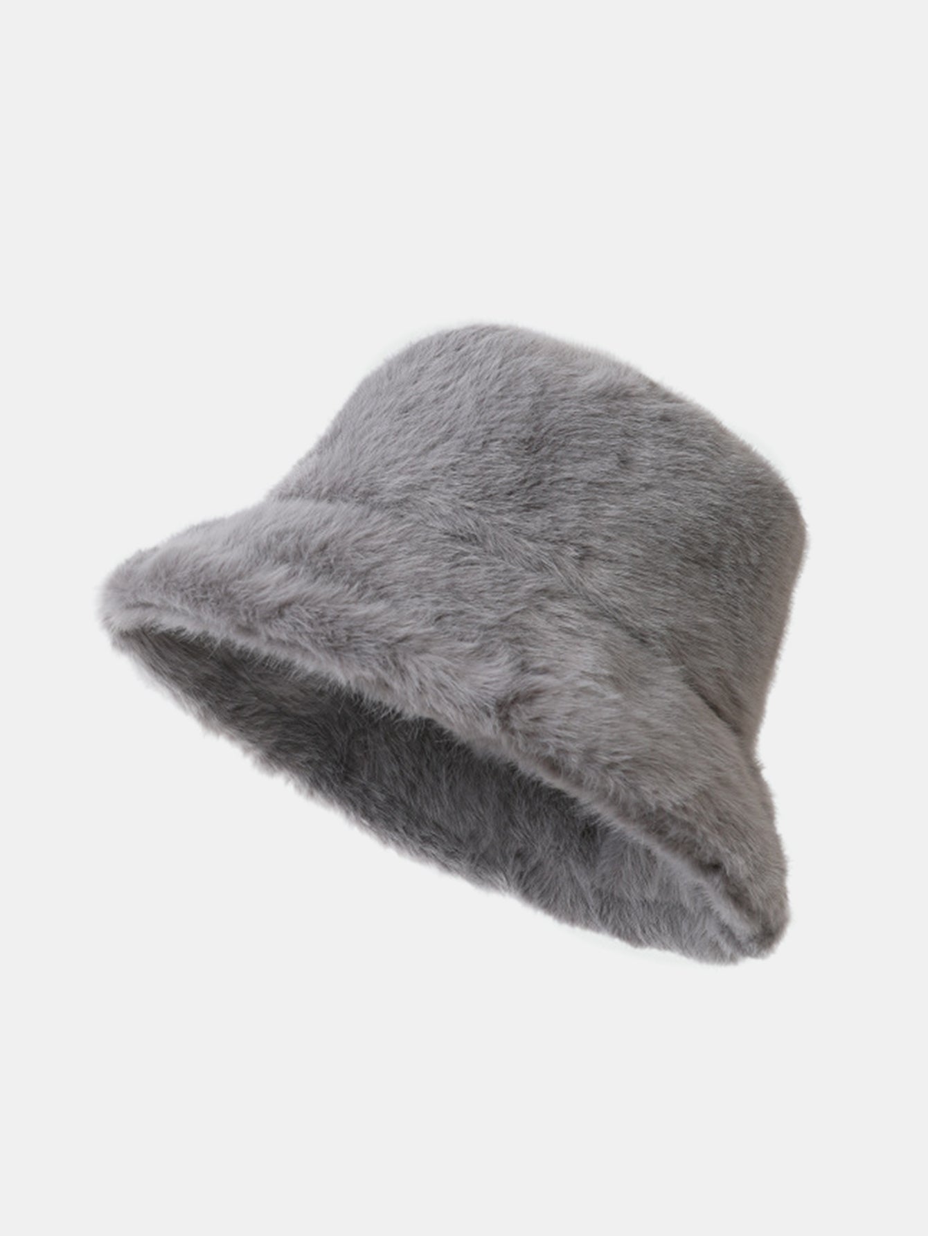 Faux Mink Fur Wide Brim Plush Bucket Hat