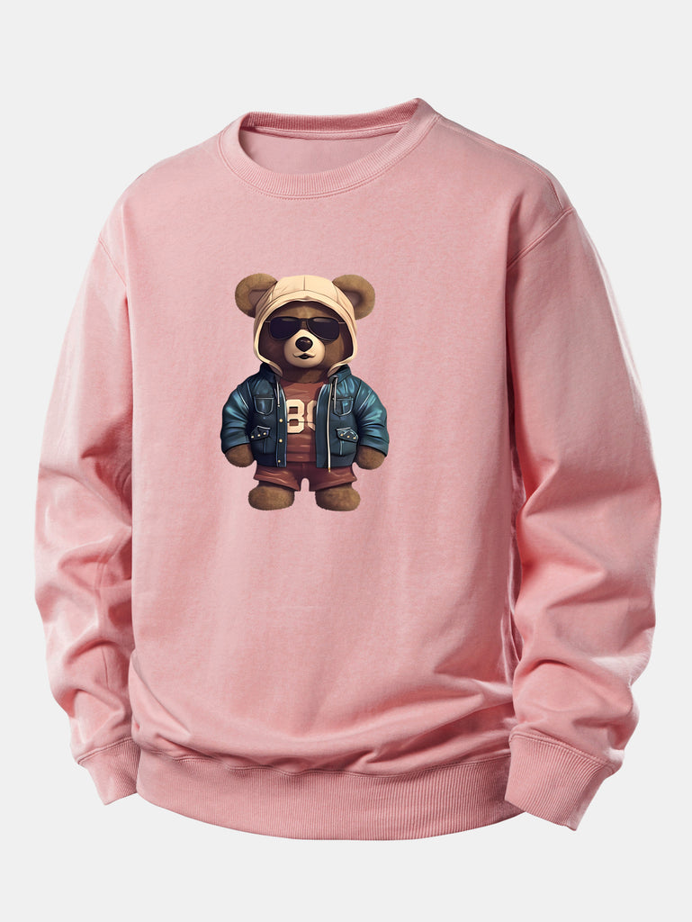 Bear In Leather Jacket Print Relax Fit Sweatshirt