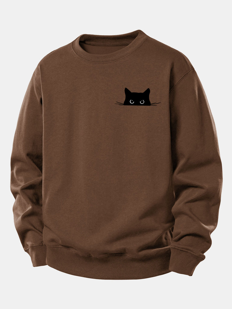 Black Cat Print Relax Fit Sweatshirt