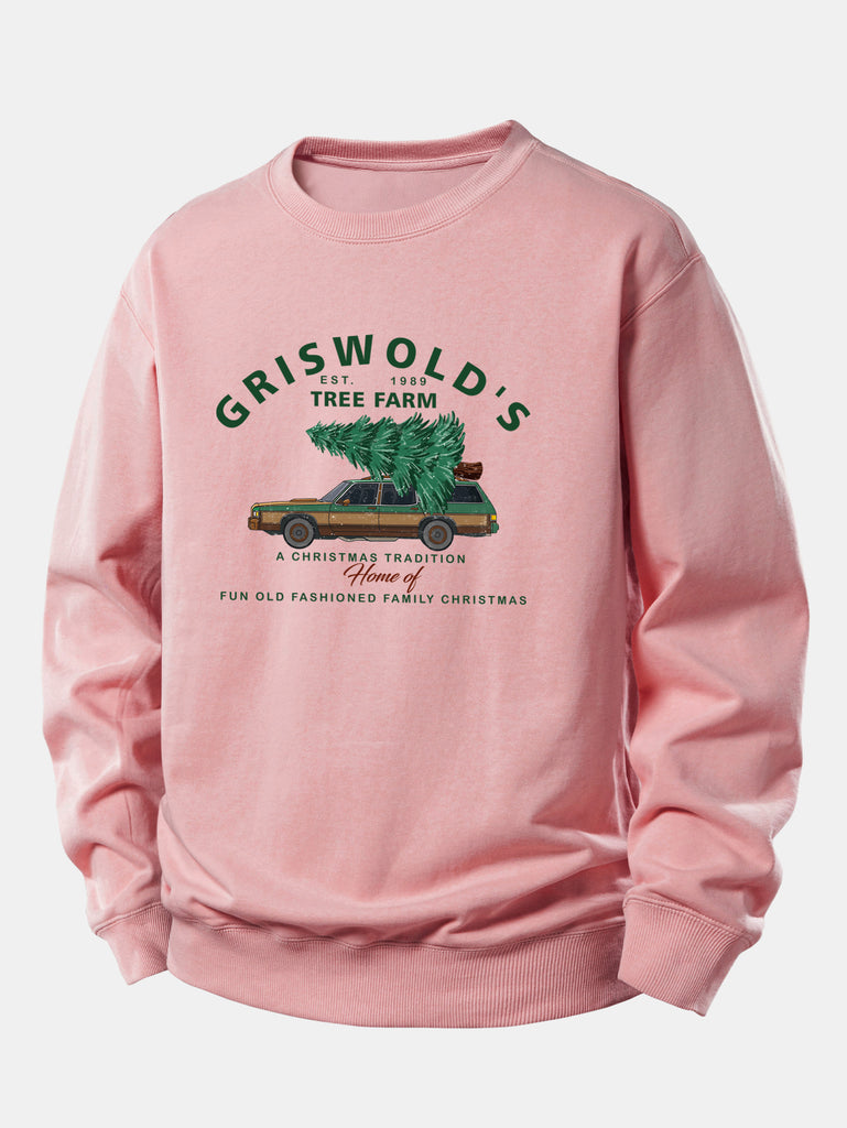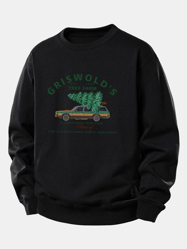Car Christmas Tree Print Relax Fit Sweatshirt